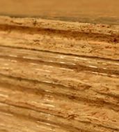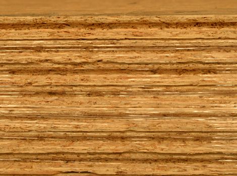 OSB is een geperste constructieplaat , die bestaat uit in gekruiste lagen liggende “strands” van voornamelijk grenen en vuren met een toevoeging van watervaste lijm.